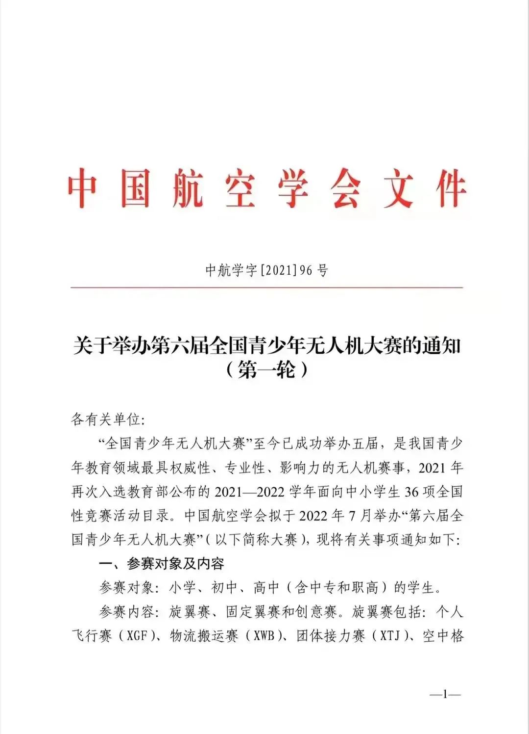 全国青少年无人机大赛由中国航空学会主办,是青少年无人机领域最具权威性、专业性、公正性以及影响力的全国比赛,也是教育部公布的面向中小学生的36项全国性竞赛之一。