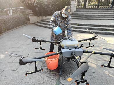 74.62万平方米的中山公园是游客、居民健身游玩的城市绿地。当前我市迎来树木防治的最佳时期,公园管理处须对园区树木全面杀菌预防烟煤病等病虫害,考虑到公园地形多样、树木密集,决定利用植保无人机喷洒均匀、精准施药的特点开展植物病虫害防治作业,进一步达到防治不留死角、防控面积全覆盖的效果,确保园林安全。