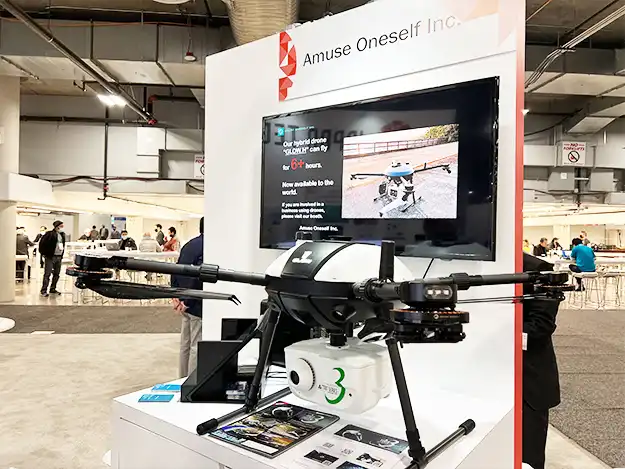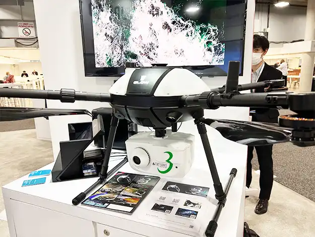 在展台上展示无人机的Hamada先生评论称:“我们有很多询问,我们现在从日本向世界各地的客户销售这些产品,而且销售情况非常好。”