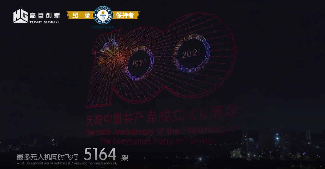 百年峥嵘史,风华正茂时。高巨创新5200架无人机以绚丽的天空之舞,深情献礼党的百年华诞。