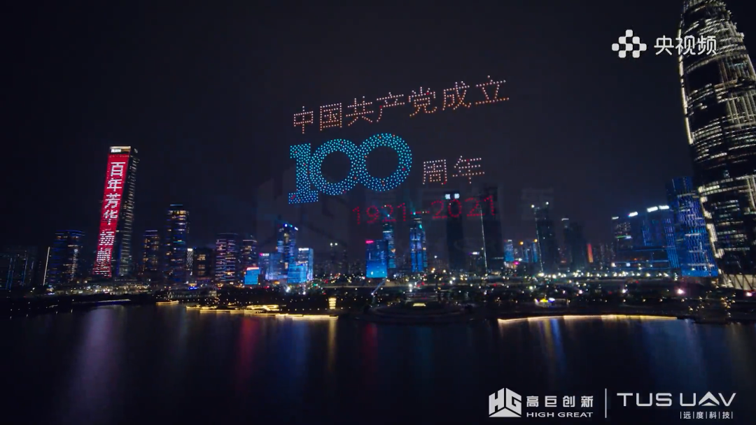 为庆祝建党100周年,中央广播电视总台开展“建党100周年灯光秀”专题活动。在建党百年倒计时100天之际,央视频携手高巨远度,通过1000架无人机表演的方式献礼建党一百周年,用初心立足当下,奋力开创新辉煌。