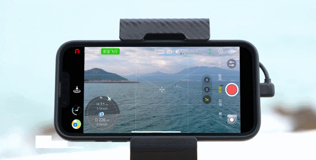 您可以使用3种方式实现对无人机的变焦操控:① 点击图传界面右侧 [变焦] 按钮可选择2倍或4倍变焦;② 长按[变焦倍数] 调出变焦罗盘,最高可实现16倍变焦;③ 双指滑动放大、缩小屏幕也可实现变焦功能。