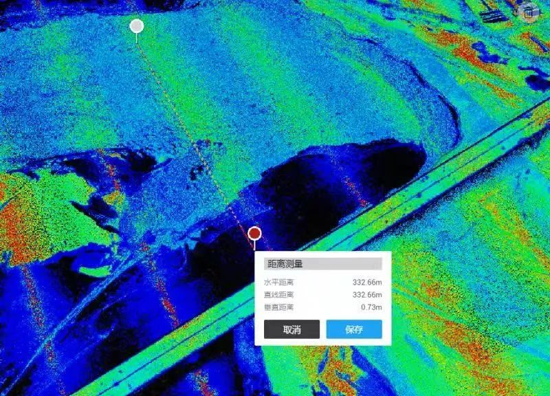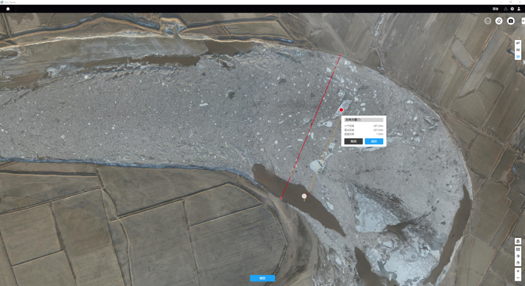 图:大疆智图软件快速测量封冻长度,冰凌与岸边距离