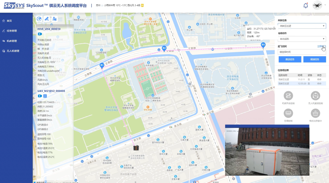 而星逻无人机全自动化系统秉承着让无人机真正“无人化“的目标,为行业用户提供基于无人机机库以及云端的人工智能软件产品,实现了无人机自动充电、自动调度、自主飞行、自动采集和AI分析等功能,无需专业人员介入,即可满足巡检需求。打造5分钟出勤圈,驻守防疫一线,形成全天候、多方位、高质效的防疫体系。