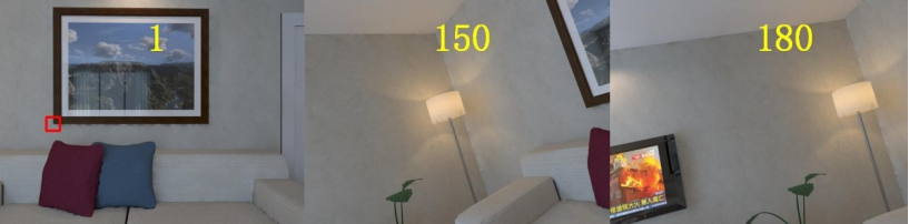 我们首先在ICL-NUIM数据集中验证了我们的算法。如图3所示,在第一帧图像中指定目标,并在后续图像中持续定位目标,随着相机移动,目标会移出画面,但我们的算法依然能够进行定位。