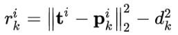 当观测不到目标时,通过特征点匹配可以找到之前保存的特征点及其到目标点的距离,每个匹配的特征点可以提供一个约束。我们将这一约束定义为一个误差项: