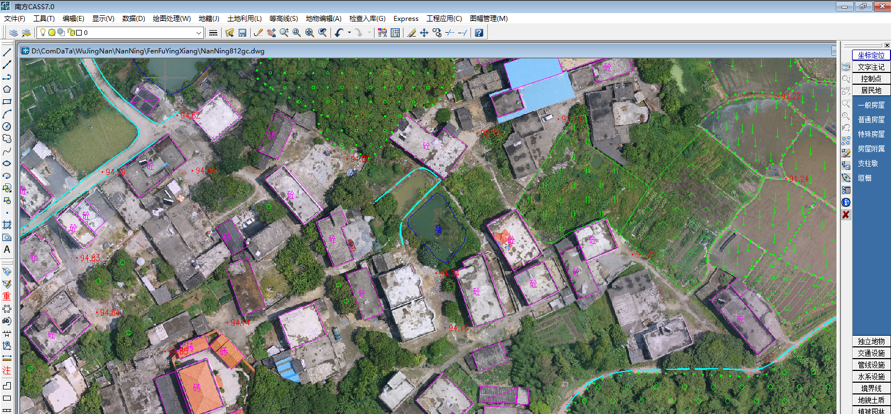 将LiMapper处理无人机影像得到的正射影像(DOM)成果,导入Cass中,进行地形图绘制。