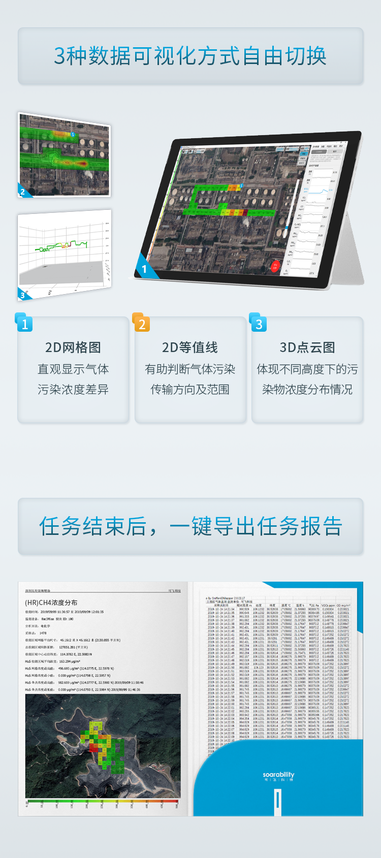 - 帮助大型工业企业方便地获取厂区不同高度空气污染的分布图,安全高效地监控厂区运行情况;