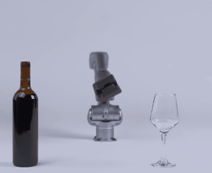 如下图[6],使用力控电机执行拿酒杯倒酒操作,如果只有位置控制,夹取过程中可能由于位置控制硬度过高导致酒瓶破损的情况发生。
