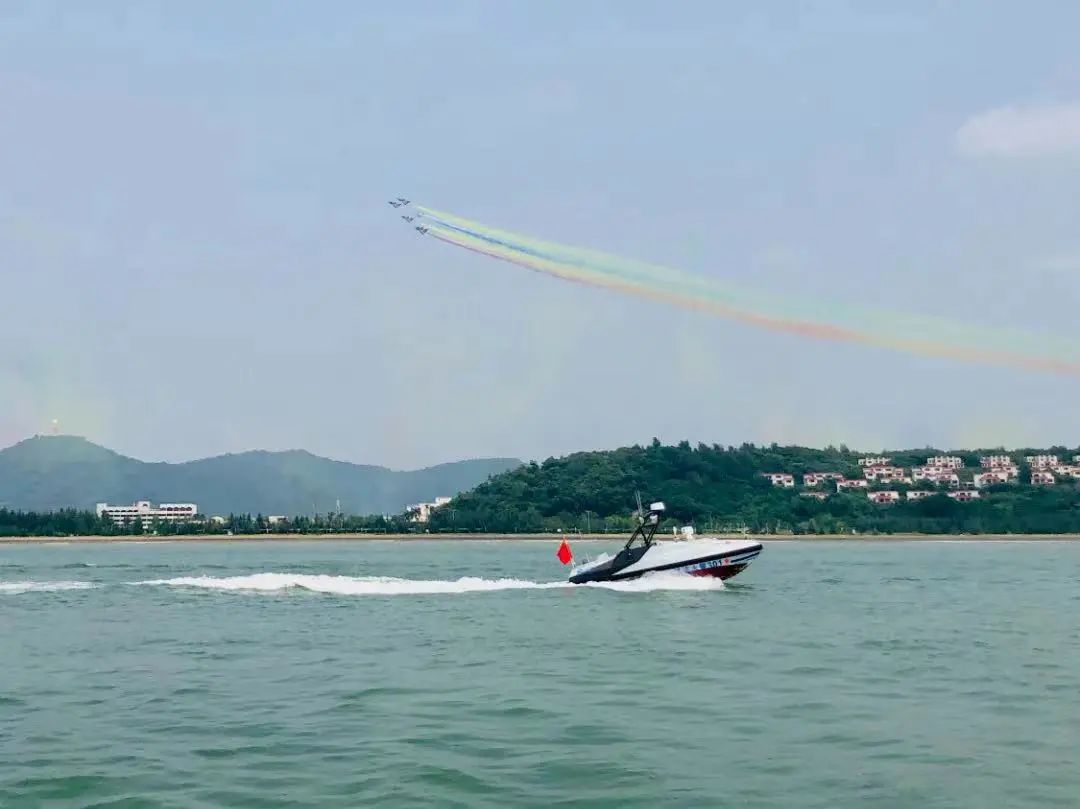第十三届珠海航展期间,珠海公安派遣2艘云洲L30“瞭望者”警戒巡逻无人艇在附近海域执行水上安保任务,排除水域安全隐患,成功守护航展水上安全,用科技装备拉起“水面防线”。