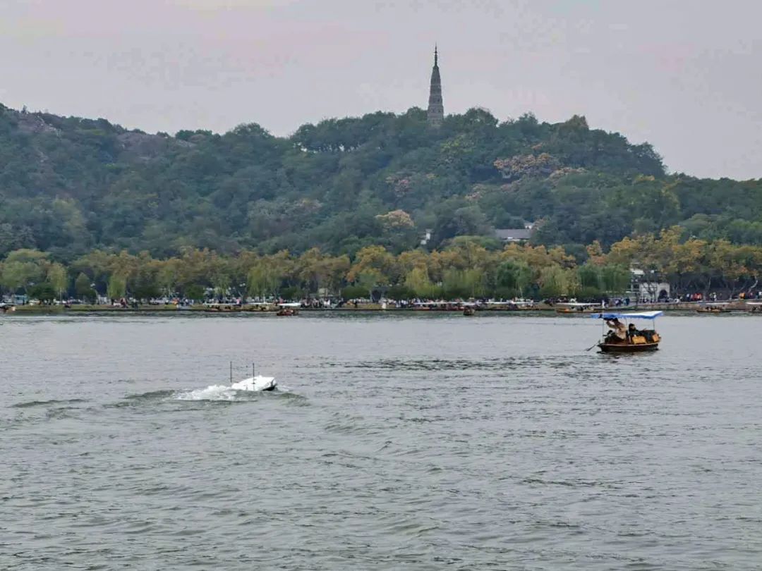 图 | 云洲5G无人船在杭州西湖水面上执行水域巡逻