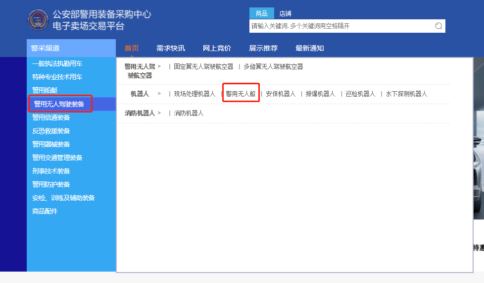 图 | 公安部警用装备采购中心电子卖场交易平台