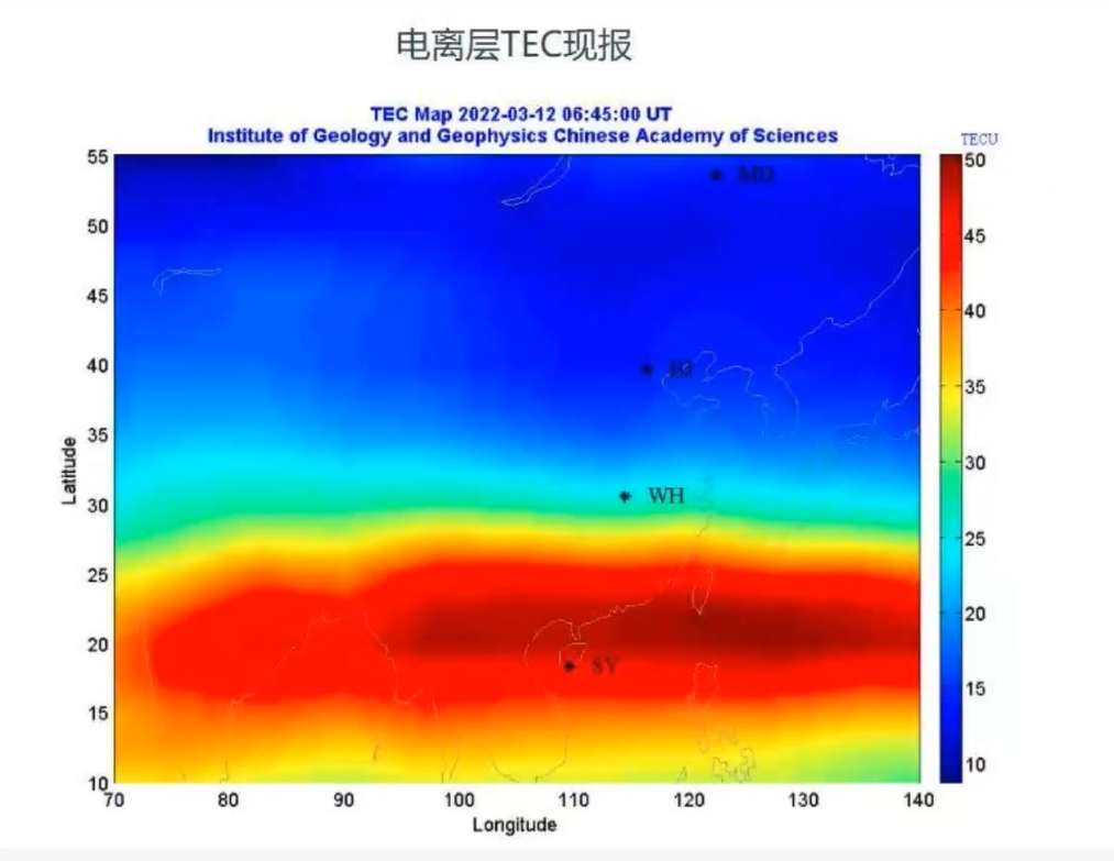 这张图其实说明了一个规律:纬度越低,电离层中电子含量越高;反之,越低。右上方的TECU时表示电子含量的单位,数值越高,电子含量就越高,1个TECU对应的大概是16.2cm的测距误差。