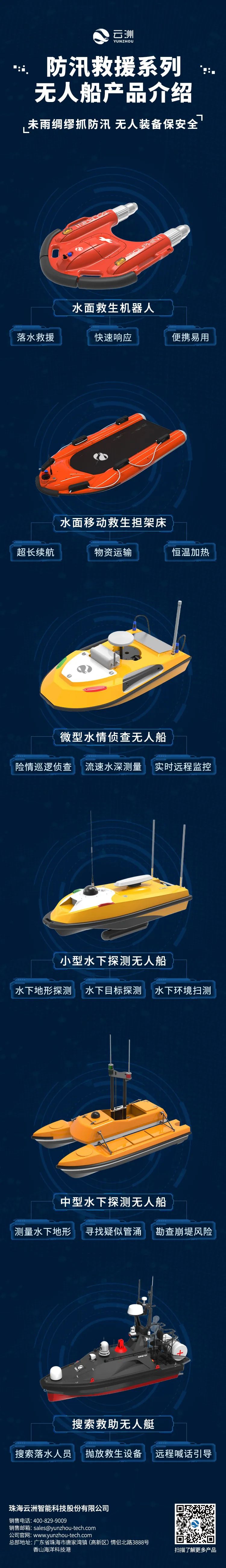 云洲防汛救援系列无人船艇已成功应用于“河南郑州“7·20”特大暴雨灾害”,并广泛应用于江西、湖北、广东、云南等全国大部分省市,高效开展水情侦查、水下探测、水面救生等防汛救援任务,取得一系列良好成果。