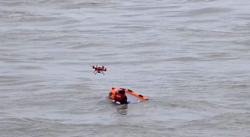 在本次抢险救援演练中,水手4防水无人机主要任务是在高空巡查水面情况,及时发现涉险人员,投递救生设备,进行水域救援行动。它还可以沿着汛期危险河段、水域巡检,持续监测水位变化,并将信息远距离传输至遥控器。为整体战略部署提供了高空画面,展示出更全面的现场情况。
