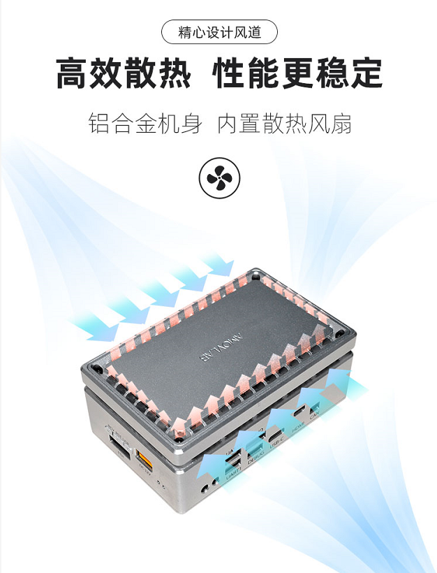 3.四周侧面吸入空气,上盖排出,增强散热效率,适应环境广,内置NVIDIA JETSON NX/Nano高性能平台模块