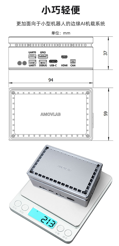 Allspark是AMOVLAB为广大AI智能硬件开发者打造的一款微型边缘计算机。Allspark在设计之初就定义了尺寸小巧、重量轻、算力强、可靠、扩展性高的特点。