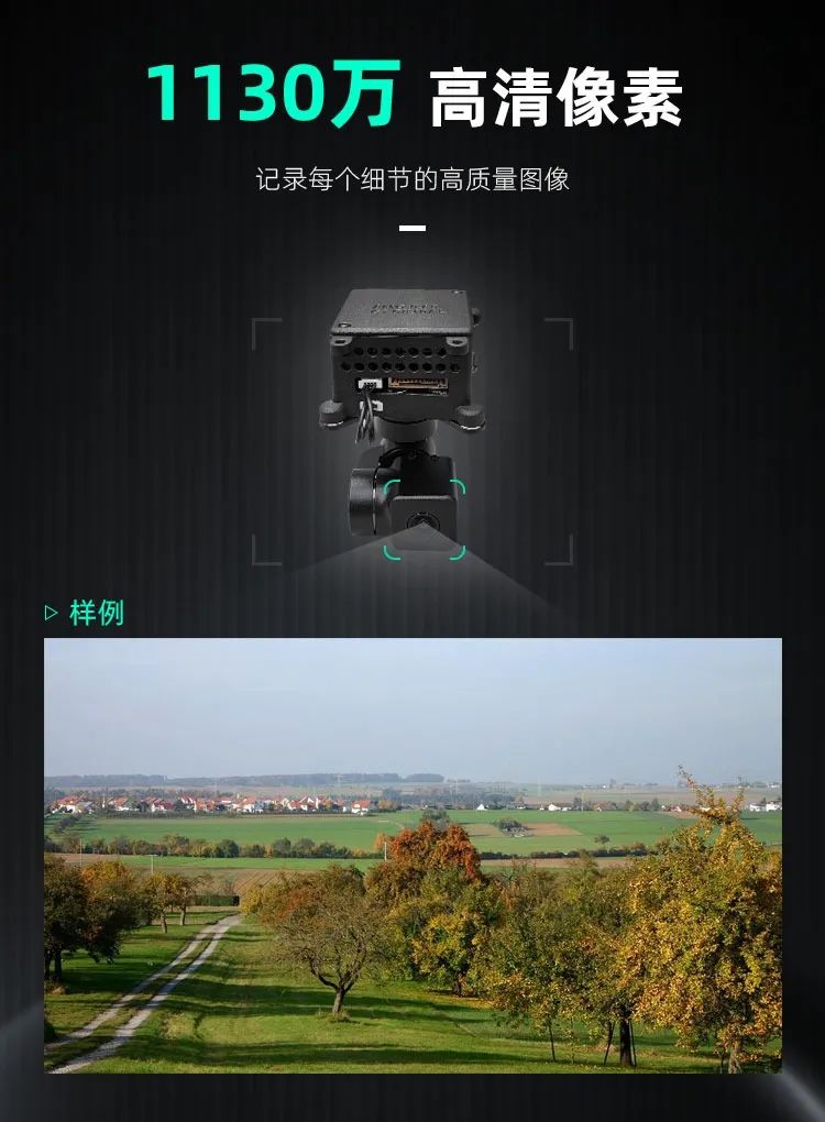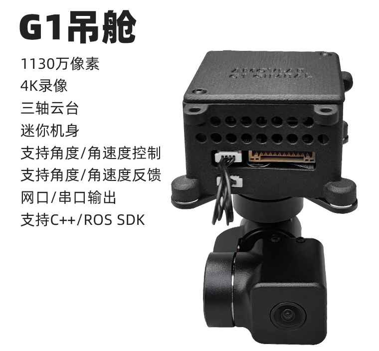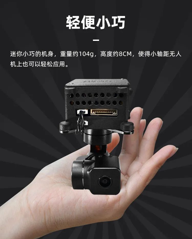 三、主要功能及核心价值介绍1.G1三轴防抖吊舱图像方面有比较亮眼的摄像模组;2.最高能以60fps提供1130万像素的视频录制;3.最高能以2.7K/30fps的分辨率输出RTSP实时视频流;4.最高能以720P/60fps的帧率输出RTSP实时视频流。G1三轴防抖吊舱的机身不仅小巧,而且采用了CNC工艺与航空铝合金材质,也由此可见G1三轴防抖吊舱开发团队对产品极致要求的匠心精神。