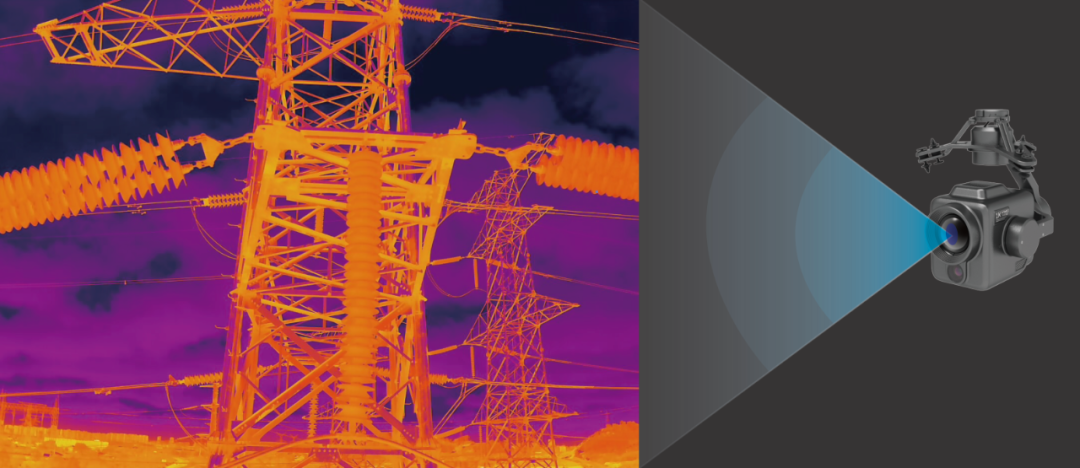 普通红外云台画幅较小,在进行通道巡检时,巡视范围窄,常常需要设置多条航线或增加飞行高度才能覆盖更大作业范围,巡检效率不高。普宙1K红外拥有57.5°×47.4°宽视场角,捕捉视角更开阔,无需复飞查看,避免拍摄“死角”,繁琐巡检一步到位。