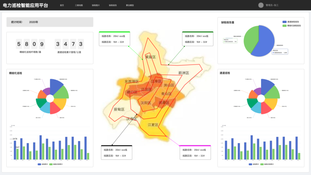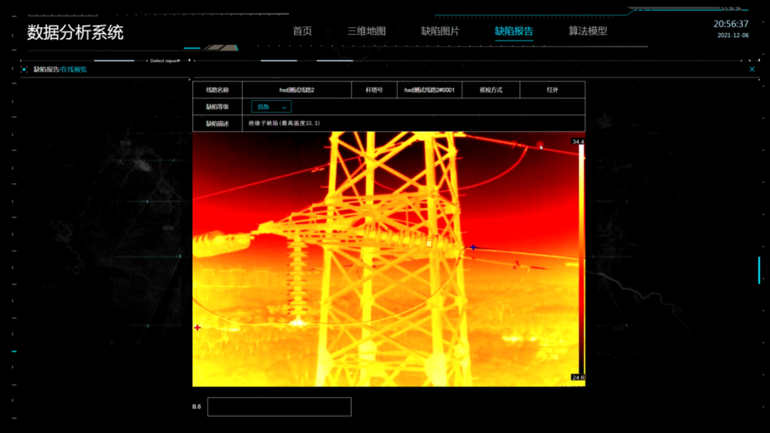 为简化巡检业务流程,提高巡检成果输出效率,普宙科技自研红外分析软件平台,自动分析精细化巡检和通道巡检的红外数据结果,并一键生成巡检报告,快速识别缺陷位置和缺陷类型。