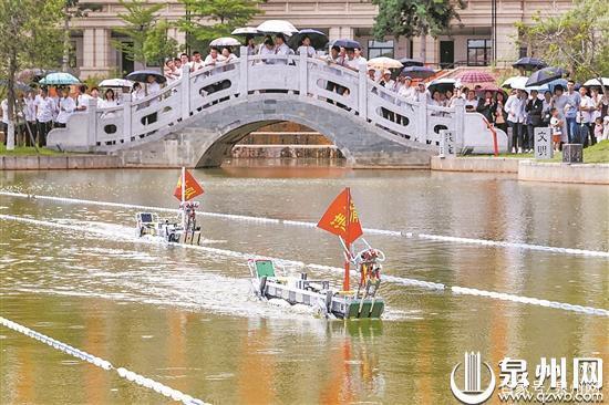泉州网6月6日讯 (记者吴志明 通讯员李乔酩 李志钦 陈钧 文/图)端午节当天,一场融合现代科技与传统民俗的机器人比赛在晋江养正中学元湖举行,现场表演了机器人赛龙舟和无人机抓鸭,让该校师生以创新的形式感受传统文化的魅力。