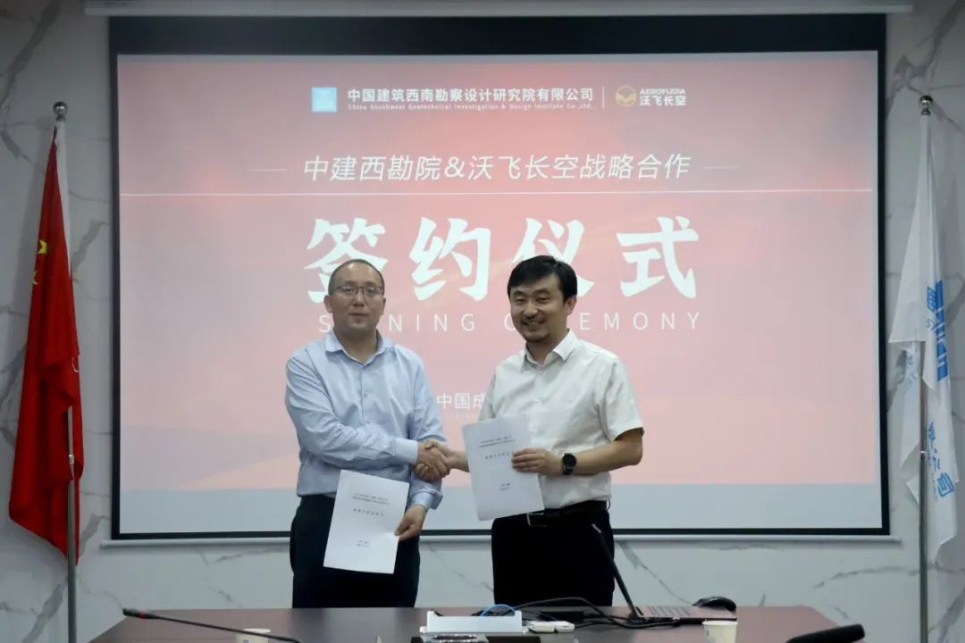 5月26日下午,中国建筑西南勘察设计研究院有限公司(简称中建西勘院)与沃飞长空在成都签订战略合作协议。双方将通过发挥各自行业优势,开展数字化智慧工地平台、新通航低空出行项目等合作,共创发展双赢的崭新篇章。