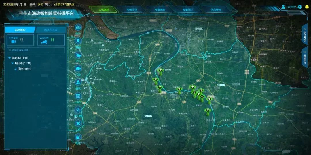 自积极布局长江大保护领域以来,普宙科技在武汉市成功部署智能前端及实时预警平台,完成“1+6+4”全面布控,实现了农业、公安、水务、市监局、环保等多部门联动执法,助力武汉市实现禁捕工作的稳健开局。同时,普宙科技大力配合荆州市农业禁捕办信息化转型需求,积极参与“天网工程”项目建设,逐步实现市县设备、系统、平台无缝对接,打造了通信与指挥一体化的信息化系统平台。