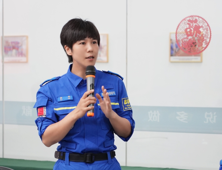 合肥市蓝天救援队队长苏琴在捐赠仪式上发言