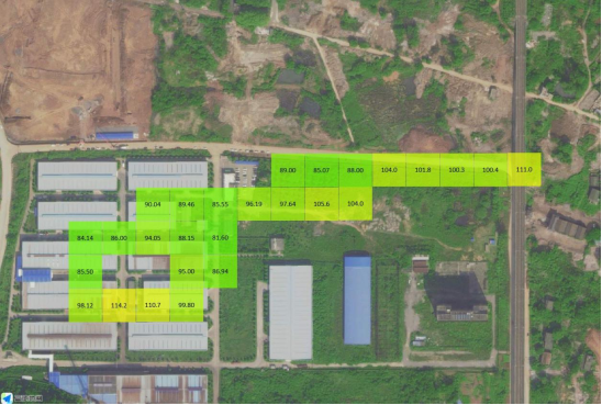 经过4个小时巡航作业,普宙科技协助监测人员完成了对湖北威辰环境科技有限公司、瀚蓝(黄石)固废处理有限公司、国控站点、湖北理工学院、飞云制药有限公司、慈湖路等重要点位,总作业面积达852952.582平方米区域内的环境空气质量监测工作。通过对巡飞数据进行整合分析,共在监测区域内发现2处PM2.5高值和3处PM10高值。