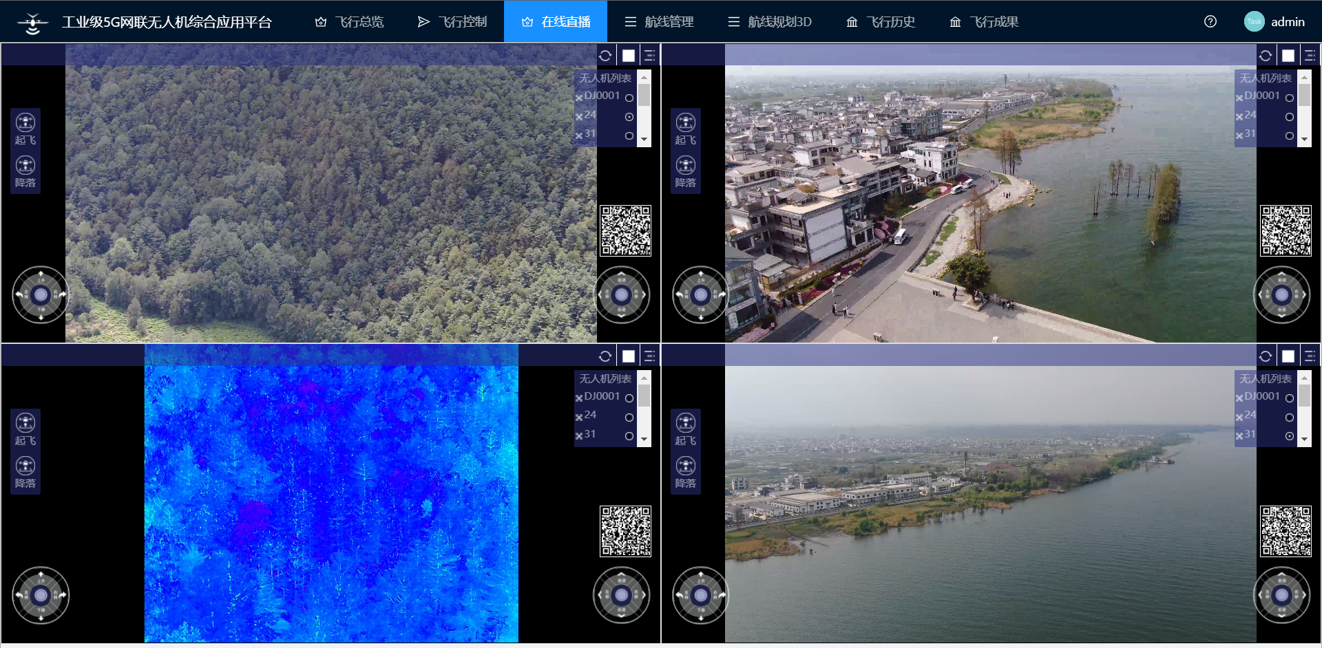 网联无人机苍山洱海巡检四分屏展示