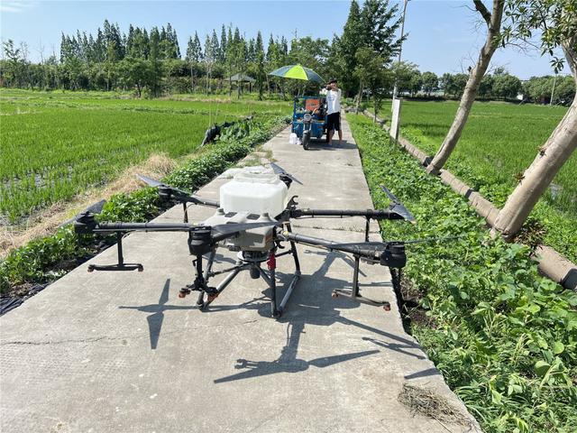 这些天,浙江嘉佑农业发展有限公司高级农艺师沈勤文也在田间忙碌着,指导无人机飞手如何运用无人机正确施肥。