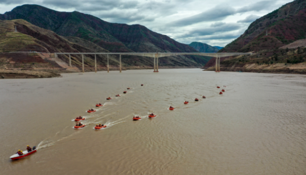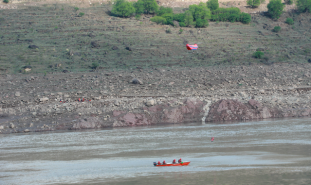 实战演练现场,编队通过金沙江心。(图片均由云南省森林消防总队提供)
