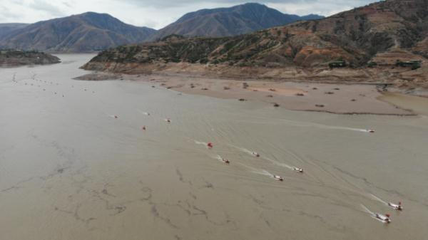 实战演练现场,编队通过金沙江心。(图片均由云南省森林消防总队提供)