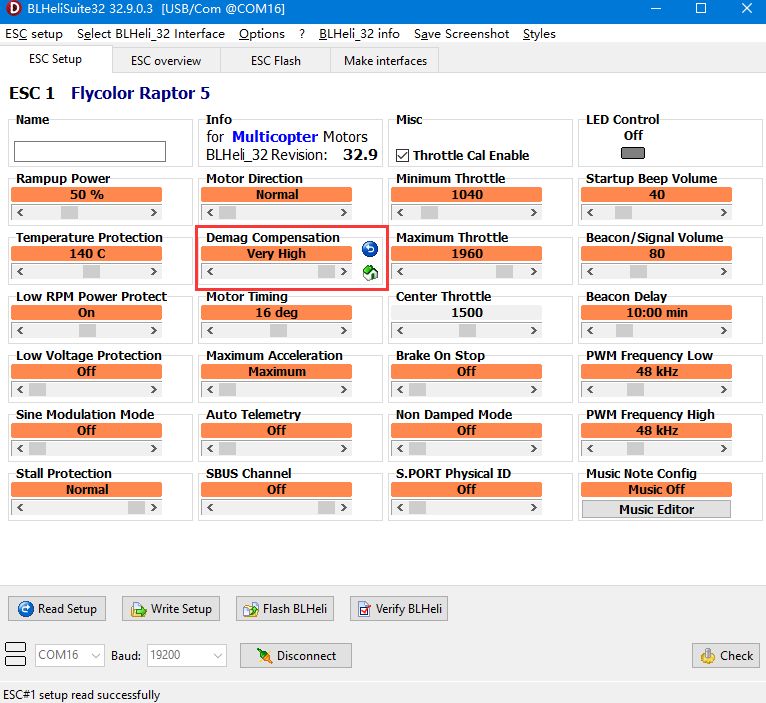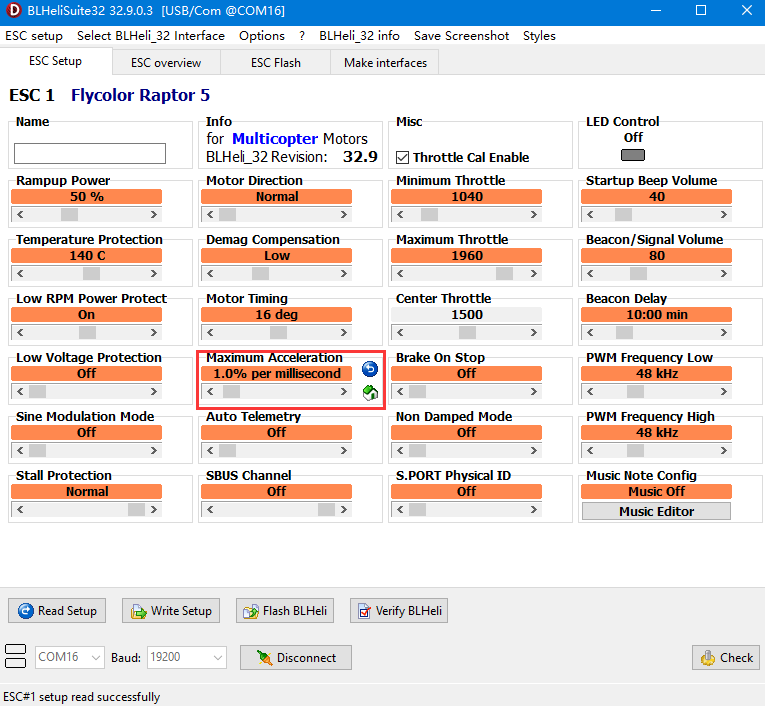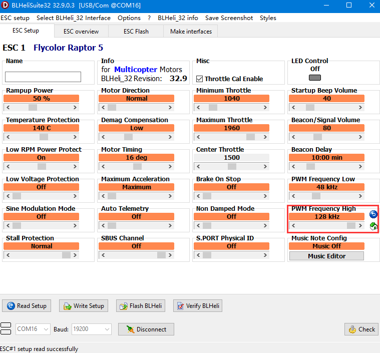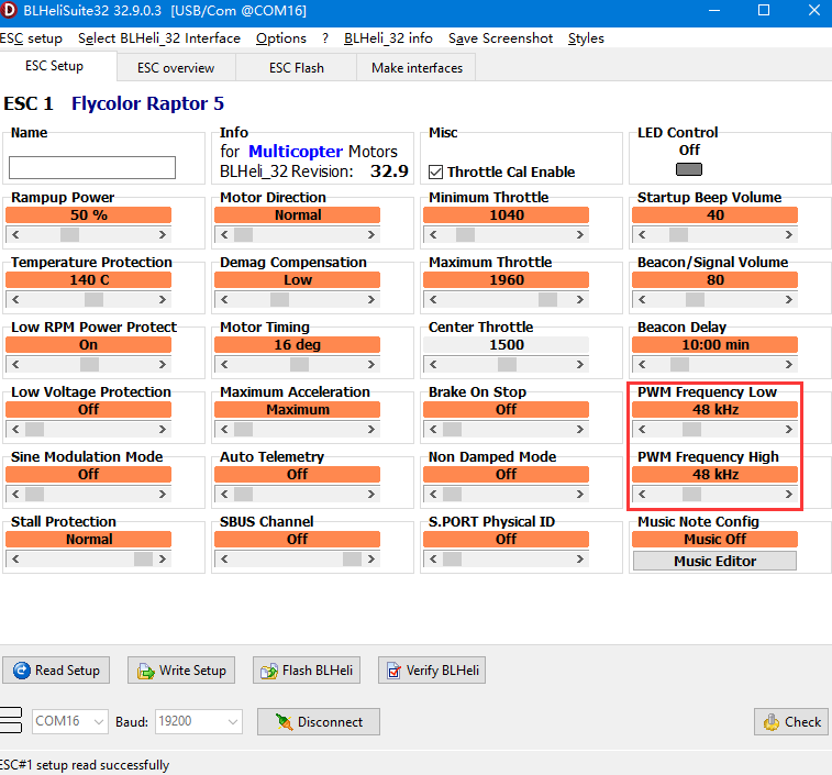 6、如按以上方法还无法解决,建议更换PWM频率支持96、128K的电调。