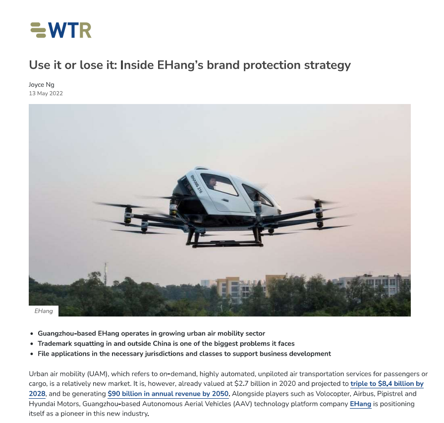 国际权威知识产权媒体《世界商标评论》报道亿航智能