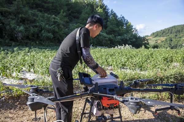服务队”技术人员在给无人机装