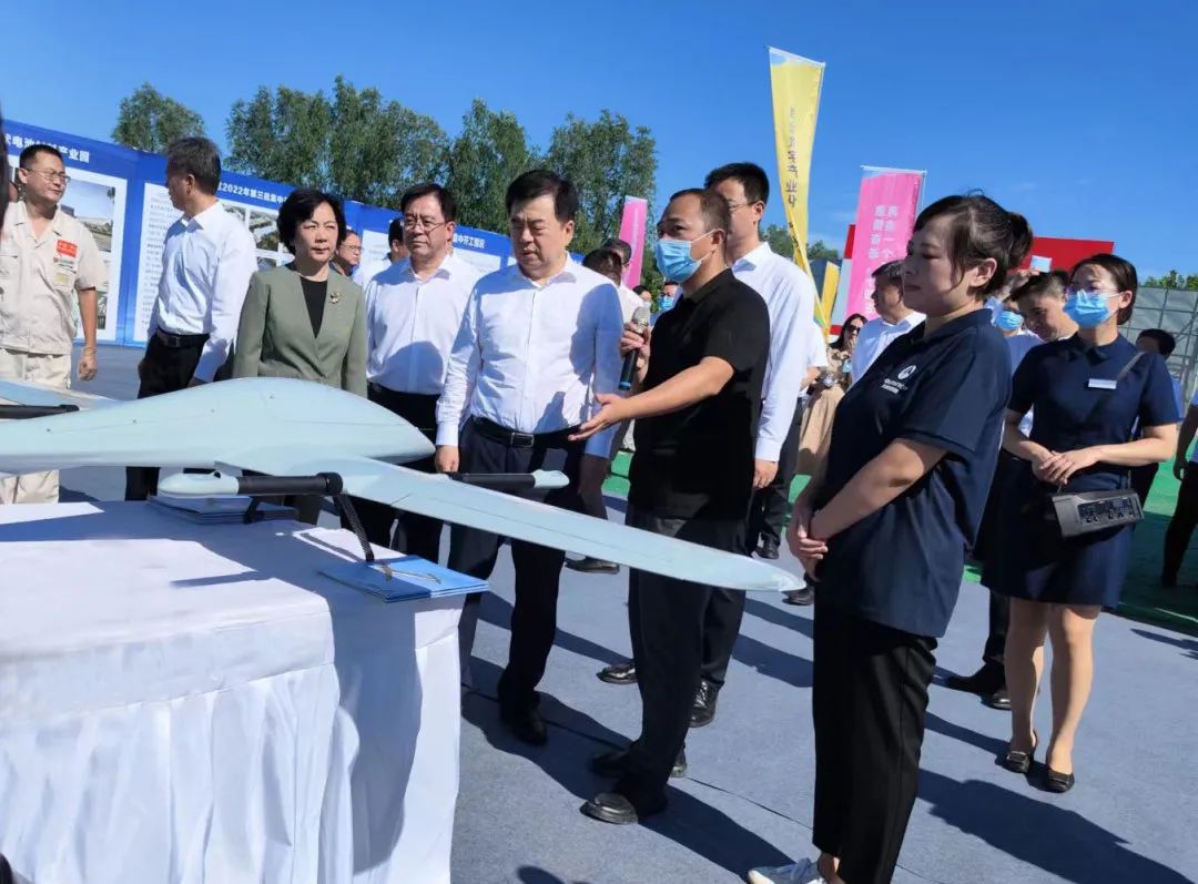 2022年8月16日,保定市举行重点项目开工仪式,保定市委书记党晓龙,市委副书记、市长闫继红一行出席了仪式并参观了重点推介项目-天峋无人机。
