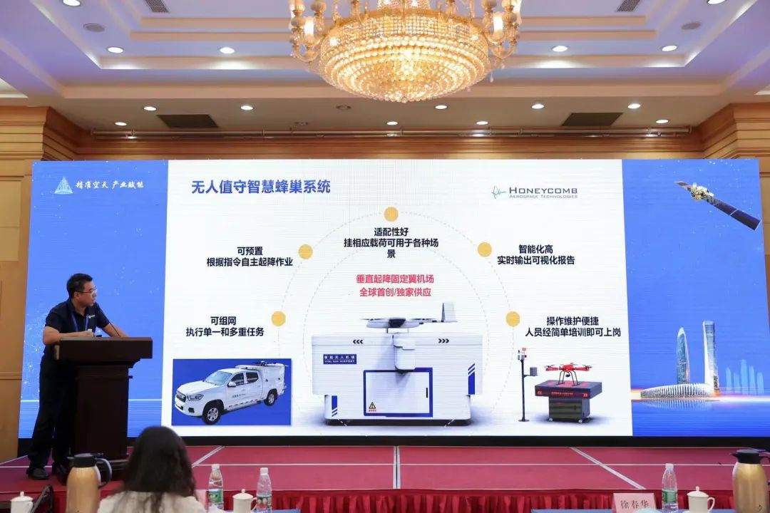 蜂巢航宇董事长在此分论坛中发表了“无人值守智慧蜂巢系统在航空遥感领域的应用”专题报告,详细介绍了蜂巢航宇无人值守平台及在临近空间环境领域的无人智能化应用。未来将依托自主研发的无人值守智慧蜂巢系统,把无人智能技术与遥感、物联网、云计算等新一代信息技术融合,推动无人值守智慧蜂巢系统与其他产业领域融合发展。打造空地联动、云边协同的数字化解决方案,推动空天信息产业高质量发展。专题报告得到行业院士专家的高度认可,并与中国科学院航空遥感中心签署战略合作协议。