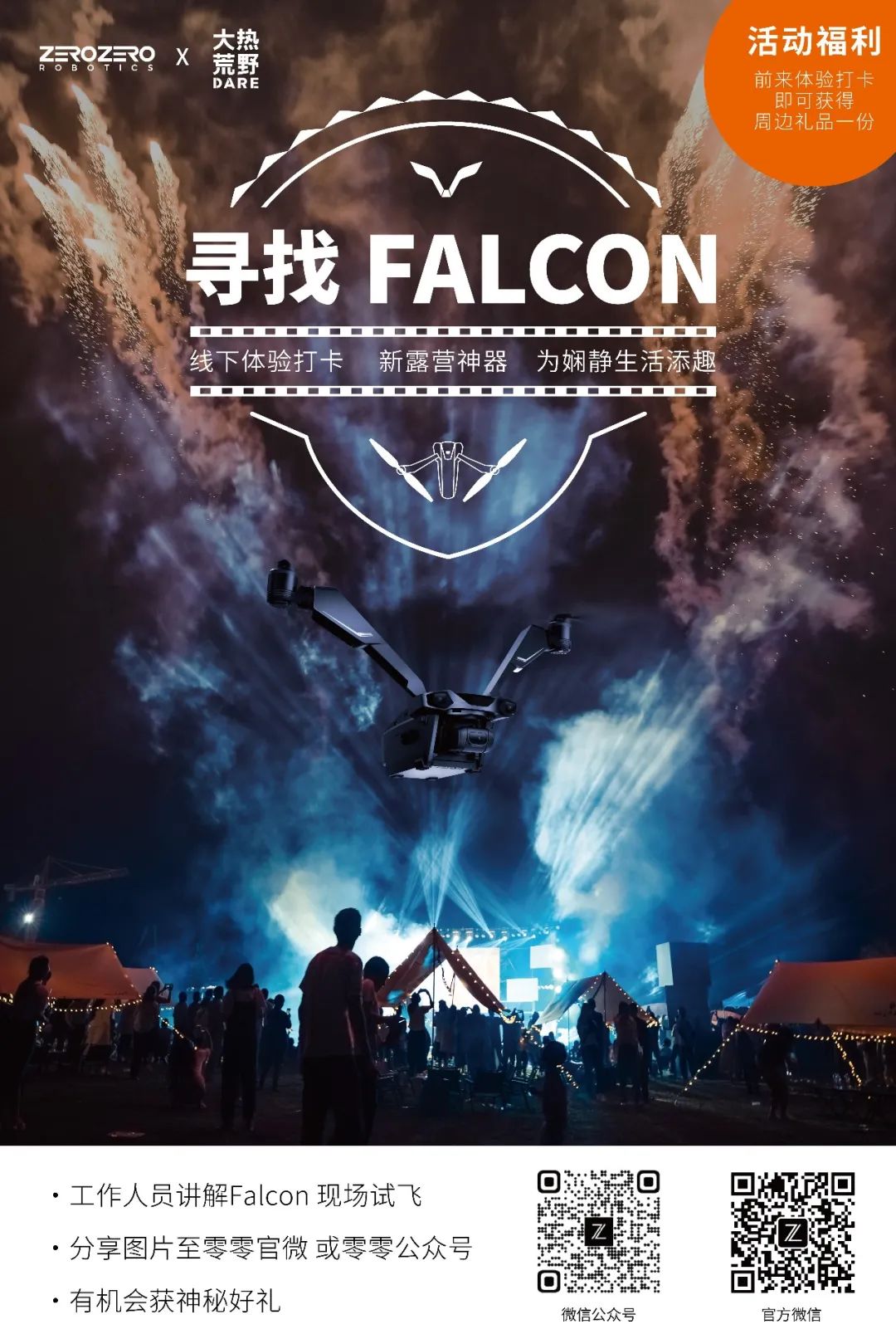 不仅如此,营地还特意提供多个免费名额,邀请零零粉丝、Falcon无人机重度用户参与活动。于是,零零✖粉丝✖大热荒野组成了这次科技与户外结合的休闲之旅。