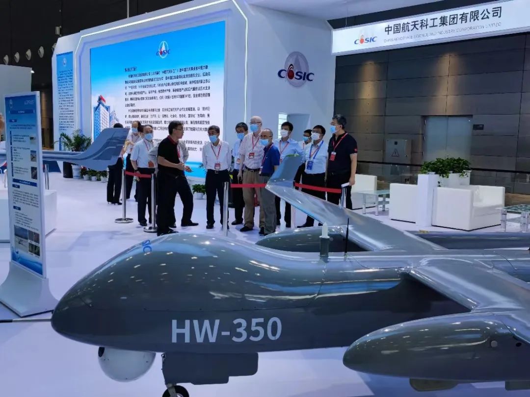 在中国航天科工集团有限公司无人机展示区域,海鹰航空公司携多款明星产品亮相,其中,HW-350小型长航时无人机等产品一经亮相,就吸引了媒体及观众驻足围观。