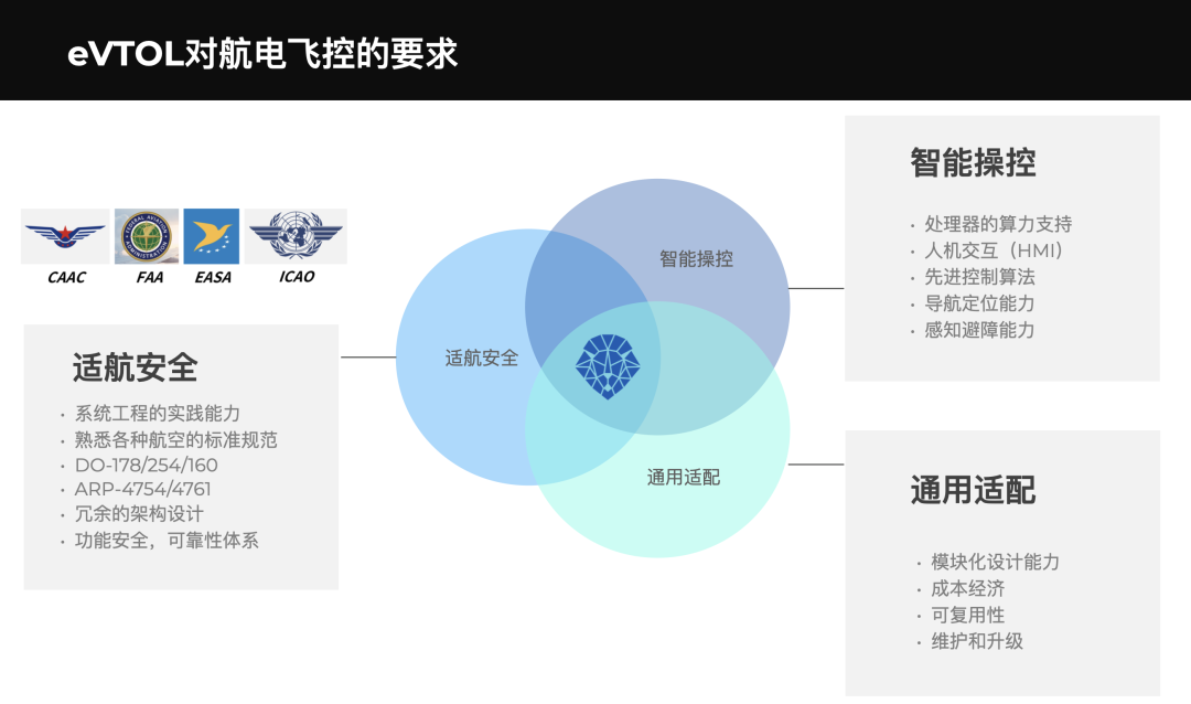 eVTOL场景下对模块化通用化设计,以及如何控制成本和经济性提出了更多的要求。如果以汽车行业自动驾驶系统来类比,自动飞行系统同样要考虑到成本控制、系统复用性以及未来的维护和升级。