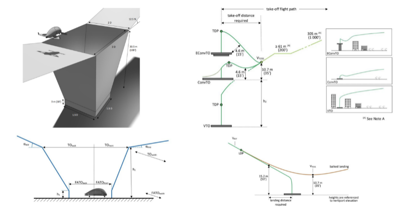 在EASA今年3月发布的“载人垂直起降飞机机场设计技术规范”中展现了,eVTOL在城市中运营时会遇到的一些飞行场景。例如自动起降时周围会有障碍物(高楼建筑)的情况,这类既有障碍物且有遮挡GPS信号可能性的场景都是较为严苛的条件。相比传统的机场,城市复杂场景是一个非常大的挑战,对航电与飞控的飞行避障带来了新的挑战。