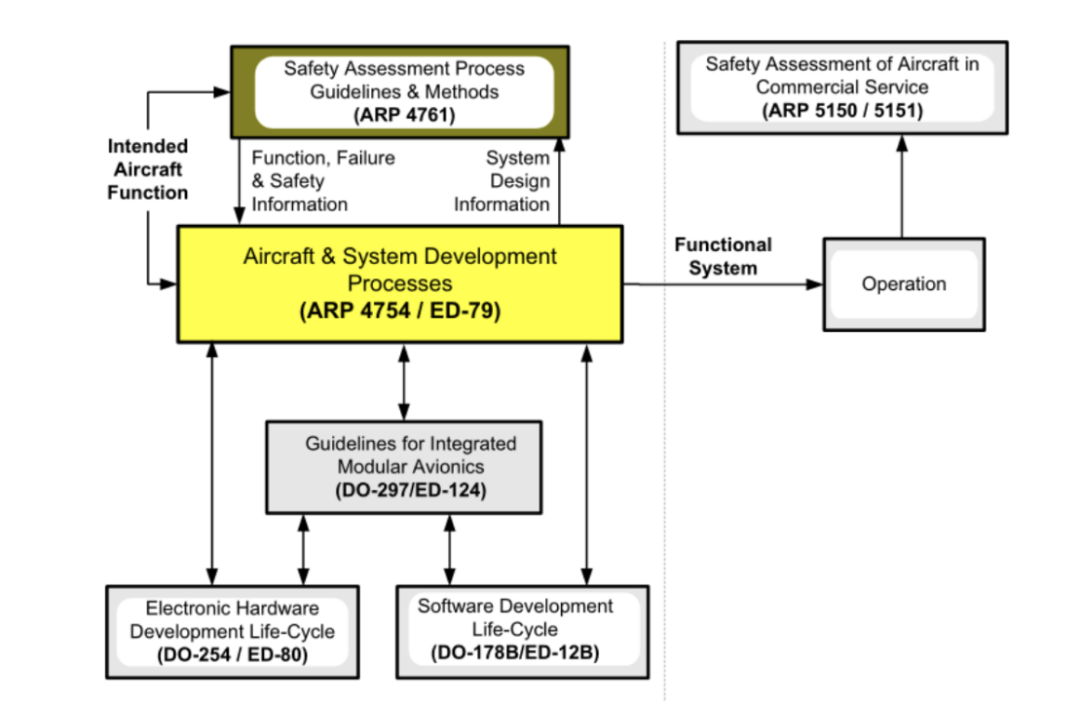 同样,RCTA和EUROCAE编制了RTCA DO-254(也称为 ED-80),为生产机载系统和设备中使用的电子硬件设备提供了指南,以便有一个表明硬件按照适航要求正常运行的可信度指标。DO-254代表行业共识,以最佳方式确保电子硬件执行其预期功能并遵守行业法规。DO-254提出了在硬件开发生命周期中完成的典型工作,也体现了行业对电子硬件开发的最佳工程实践的共识。