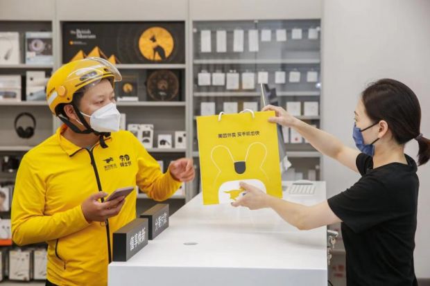 从2020年 iPhone 12 以来,美团外卖便与 Apple 授权专营店开展合作,并不断拓展门店数量。今年,合作的Apple 授权门店扩展到全国200多城、1100余家。整个流程,与点一份外卖完全一样:用户上美团外卖搜索“iPhone”,进入 Apple 授权专营店下单,随后由骑手配送,最快半小时送达。