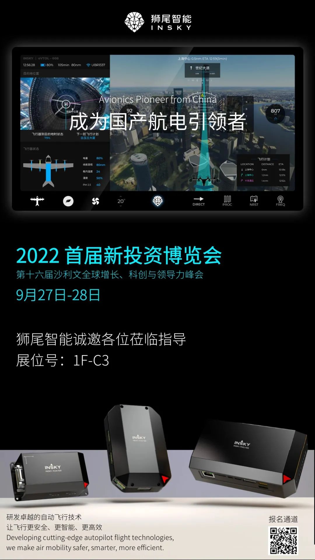 2022首届新投资博览会暨第十六届沙利文全球增长、科创与领导力峰会(以下简称“大会”)将于9月27日至28日在上海国际会议中心举办。狮尾智能受邀参加亮相1F华夏厅-C3展位,期待为您展现更安全、更智能、更高效的自动飞行技术。