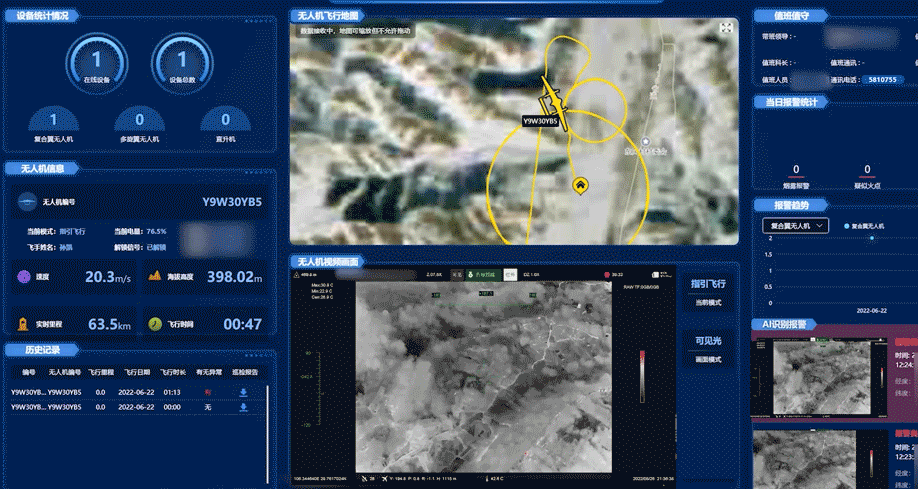 救援现场,XC-25双头龙无人机搭载三光吊舱,对现场大范围火情区域进行火情侦察,隔离带防火,物资配送等任务。一方面,无人机利用高空优势侦察起火风险点,进行现场火情侦测,余火监控及其他复燃的可能。并将现场巡查视频通过5G网络实时回传指挥中心,为前线森防灭火工作提供快速、准确、全面的数据分析和应急处理。