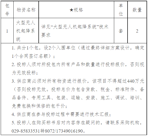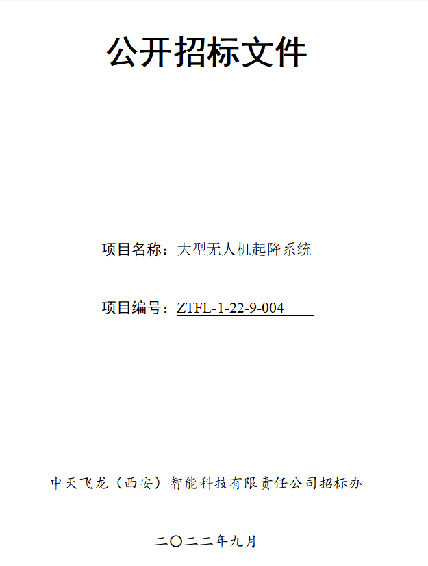 一、项目名称:大型无人机起降系统 二、项目编号:ZTFL-1-22-9-004 三、项目概况