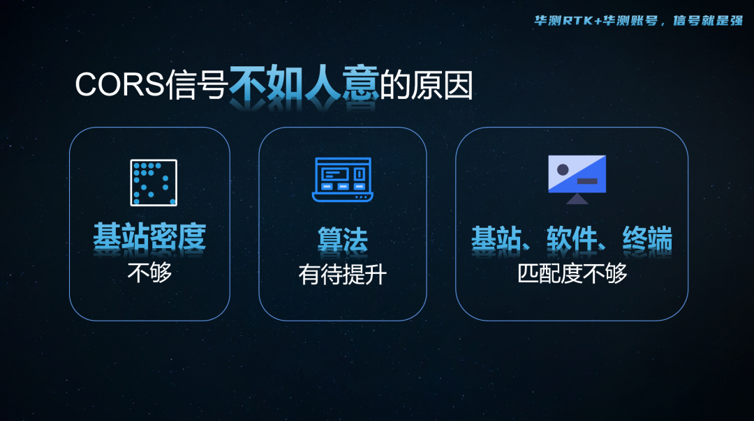 通过自建当前国内最高密度基准站网,搭配引入了人工智能的CORS服务算法,“华测一张网”实现云、网、端同源,让华测RTK+华测账号,信号就是强!