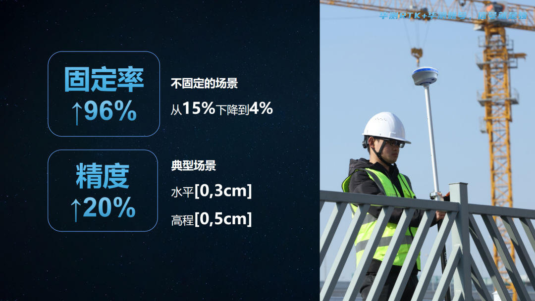 与此同时,测试结果显示,RTK测量的精度也实现了20%以上的提升。典型场景下,99.99%的平面定位精度都可以保证在3cm以内,高程定位精度都可以保证在5cm以内。遮挡环境下,平面定位精度可以保证在5cm以内,高程定位精度可以保证在8cm以内。