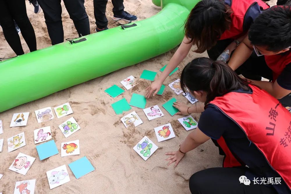在次日的海边素质拓展活动中,小伙伴们团结协作、拼搏奋进的精神在各个小游戏里得到充分的体现。